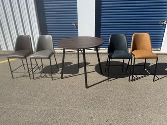Jofran Five Piece Round Modern Solid Wood Counter Height Dining Set. Mis Matched Color Faux Leather Stools. Table 42” wide 42” deep 36” tall Stoo$220Glenshaw, PA