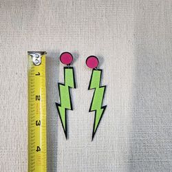 Neon Green Pink Lightning Bolt Earrings Cosplay/80's/Halloween/Spaceship/Zenon$2Brea, CA
