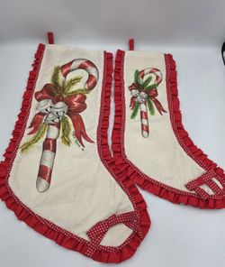 VTG 80's 2~ Handmade Christmas Stockings Bells Candy Canes Wreaths Ruffles Red $49Grapevine, TX