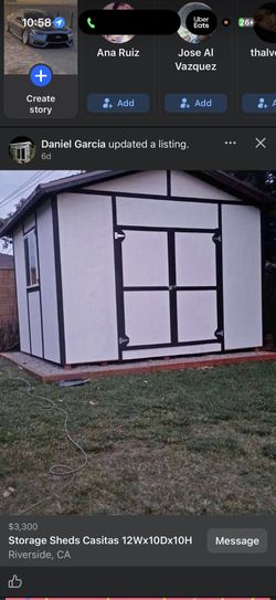 Storage Sheds Casitas 12Wx10Dx10H$3,500Redlands, CA