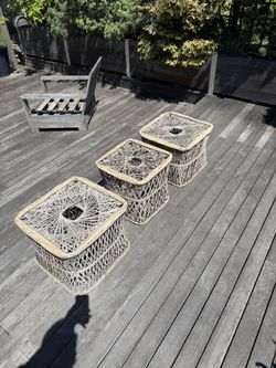Vintage MCM Russell Woodard Spun Fiberglass Ottoman Patio Table set of 3 Mid-Century$250New York, NY