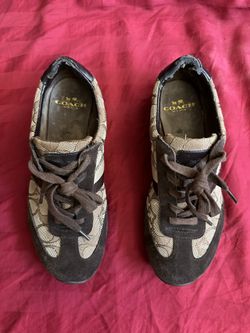 COACH Kelson Tennis Shoes Khaki Brown Signature Jacquard Suede Sneakers US 6.5B$25San Diego, CA
