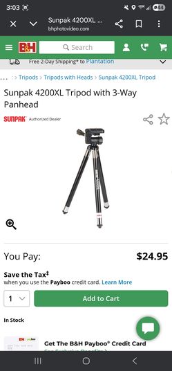 SUNPAK 4200XL tripod with 3-way panhead (used once so literally new condition)$25Oakland Park, FL