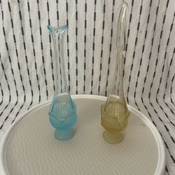 2 Viking Cabbage Leaf Vases Frosted Vintage Retro Mid Century MCM One Blue One Yellow$40Oakland, CA