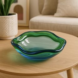 Murano Round Wavy Ribbon Italian Blue Green Heavy Vintage Decor Trinket Dish$165Oakland, CA