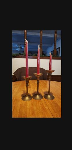 3 Vintage Brass Taper Graduated Candlestick Holders Decor Candle Holder, Located In SW Austin Off Brodie Ln 78745$20Sunset Valley, TX