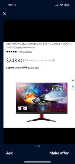 Acer 24.5 240hz gaming monitor $210Miami, FL