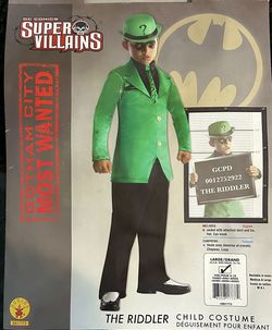 ~HALLOWEEN Child’s RIDDLER Costume LG 12/14~Hat, Jacket, Mask$8Port St. Lucie, FL