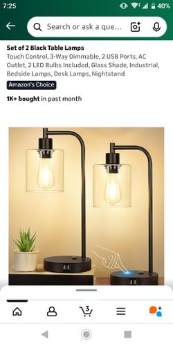 2 Industrial Table Lamps 3-way Touch Control with 2 USB port dimmable Lights $40El Paso, TX