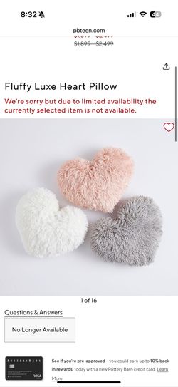 Pottery Barn Teen Fluffy Luxe Heart Pillow Valentine’s Day$20Clarendon Hills, IL