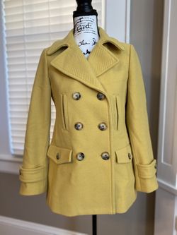 Talbots Yellow Mustard Wool Blend Double Breasted Herringbone Peacoat Jacket Size Petite 4P$50Hickory, NC