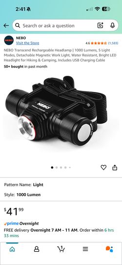 Brand New NEBO Transcend Rechargeable Headlamp | 1000 Lumens, 5 Light Modes, Detachable Magnetic Work Light, Water Resistant, Bright LED Headlight for$30Chula Vista, CA
