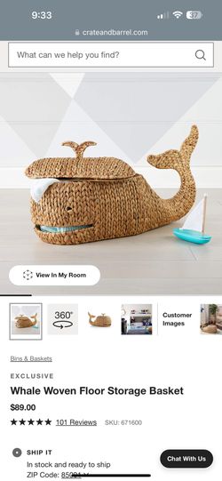 Crate And Barrel Whale Wicker Toy Box$45Phoenix, AZ