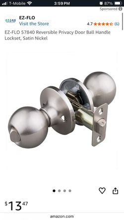 EZ-FLO 57840 Reversible Privacy Door Ball Handle Lockset, Satin Nickel $50Pasadena, CA