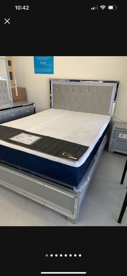 New LED Gray Queen Canopy Bedroom Set includes: Queen Light Up Bed frame, Night stand, Dresser, and Mirror for only$850Glendale, AZ