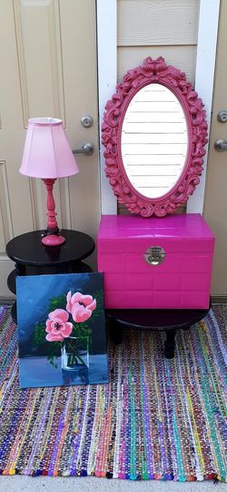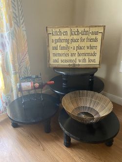 Four Black Plant Stands. Two Pillows 4 Small Black Mirrors.$45Conroe, TX