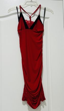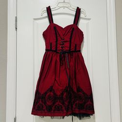 HOT TOPIC | Red And Black Corset Fit And Flare Dress with black roses design and lined with black tulle$15Oakland, FL