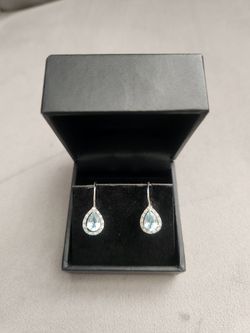 14kt White Gold Diamond Blue Topaz Dangling Earrings $800Bell Gardens, CA