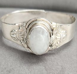 925 Sterling Silver Natural Moonstone Cuff Bracelet $100Bell Gardens, CA