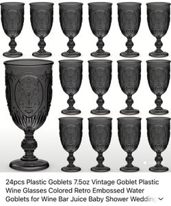 24pcs Plastic Goblets 7.5oz Vintage Goblet Plastic Wine Glasses Colored Retro Embossed Water Goblets for Wine Bar Juice Baby Shower Wedding Reception $30San Bernardino, CA