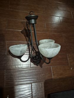 3-light oil-rubbed bronze chandelier with alabasterton white glass shades. $45Riverbank, CA