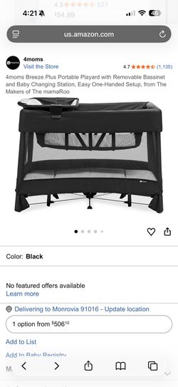 4moms Breeze Plus Portable Playard with Removable Bassinet and Baby Changing Station, Easy One-Handed Setup, from The Makers of The mamaRoo$300Arcadia, CA