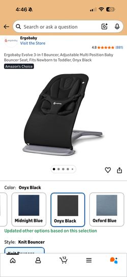 Ergobaby Evolve 3-in-1 Bouncer, Adjustable Multi Position Baby Bouncer Seat, Fits Newborn to Toddler, Onyx Black$125El Monte, CA