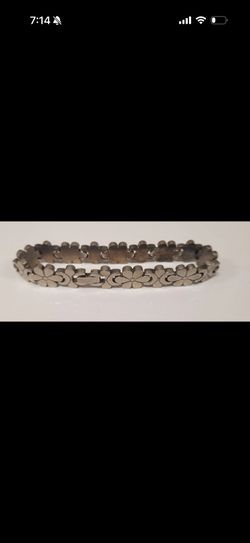 VINTAGE MEXICAN TAXCO HEAVY STERLING SILVER FLOWER LINK BRACELET $150Centralia, WA