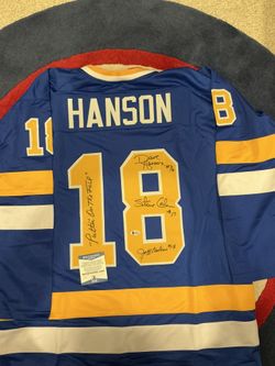 Hanson Brothers X3 Signed Chiefs Blue Jersey Slapshot Puttin On The Foil Beckett$340Roselle, IL