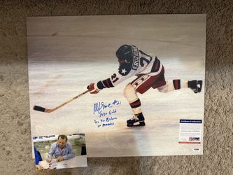Team USA MIKE ERUZIONE Do You Believe in Miracles 16x20 & 1980 Gold Signed PSA$140Roselle, IL