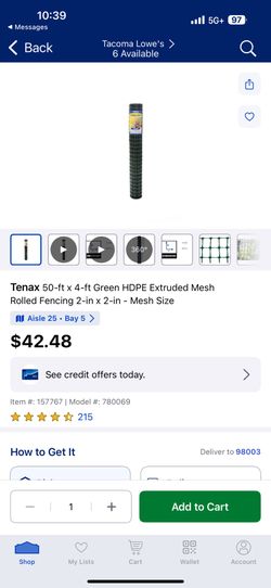 50-ft x 4-ft Green HDPE Extruded Mesh Roll $20Federal Way, WA
