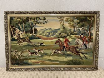 Vintage XL Needlepoint Hunting Scene Framed Wall Art$175Delray Beach, FL