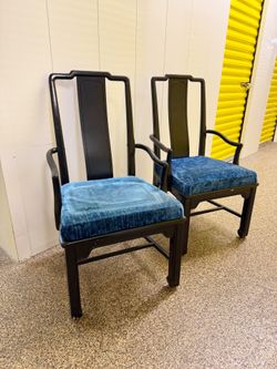 Vintage PAIR James Mont/Raymond Sobota Style “Chin Hua” Black Wood&Blue Velvet Chinoiserie Armchairs$175Delray Beach, FL