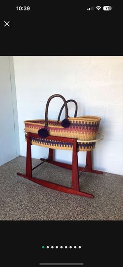 Bohemian Moses Basket Woven Purple/Blue Baby Bassinet W/ Cherry Rocker$125Boynton Beach, FL
