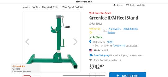 Greenlee RXM Reel Stand, 6000 lb Capacity, 23" - 72" Spool$325Ontario, CA