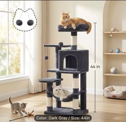 Feandrea Cat Tree, 44.1-Inch Cat Tower, Plush Multi-Level Condo with 4 Scratching Posts, 2 Perches, Hammock, Cave, Smoky Gray$40Rocklin, CA