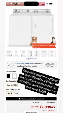 Speed queen tc5 washer and dryer$2,500Los Angeles, CA