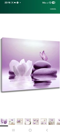 White Flower and Purple Butterfly on Stone Modern Yoga Spa Spiritual Artwork 24x16 IN$30Tempe, AZ