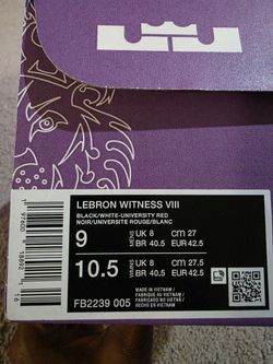 Nike LeBron Witness VIII Black/White/University Red, Men's Size 9, Women's Size 10.5$90Frisco, TX