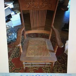 Solid oak chair with wicker seat$75Houston, TX