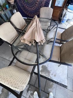 Patio Table Set w/ 6 Cushioned Chairs + Solar Light Umbrella$150Orange, CA