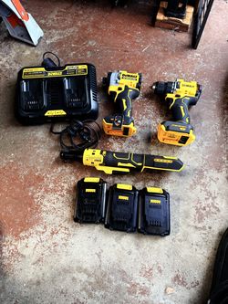 Brand new DEWALT tools compact 1/2” Hammer drill with battery, brushless compact 1/4” impact driver with battery, atomic cordless 1/2” ratchet with b$400San Bruno, CA