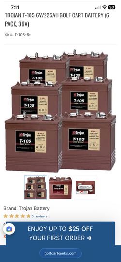 Trojan T-105 6V And T1275 12v Golf Cart Batteries$600San Antonio, TX