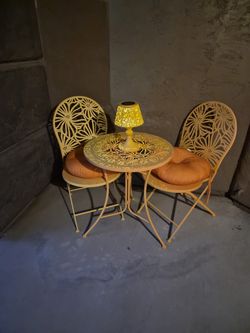 Hibiscus Orange Bistro set w/cushions and solar lamp$120Gilbert, AZ