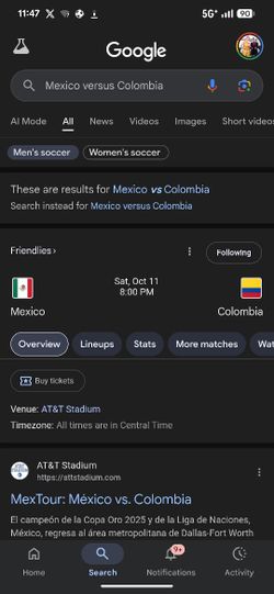 Mexico Vs Colombia At AT&T October 11$1Dallas, TX