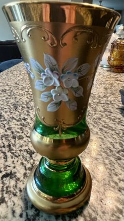 Vintage Joska Kristall Mundgeblasen Green And Gold Hand Painted Glass Vase From Germany$15Queen Creek, AZ