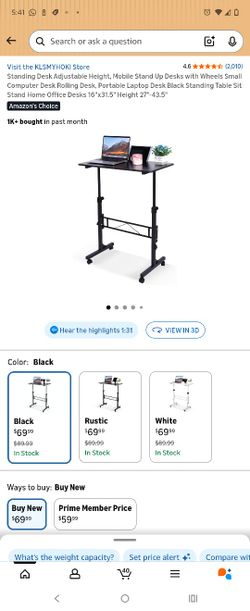 Standing Desk Adjustable Height, Mobile Stand Up Desks with Wheels Small Computer Desk Rolling Desk, Portable Laptop Desk Black Standing Table Sit Sta$35Bakersfield, CA