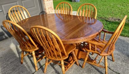 Oak Super Long Ding Set/ Table and 6 Chairs/fits 12 chairs/Solid Wood/Farmhouse/Rustic/Antique/Rare$500Spanaway, WA