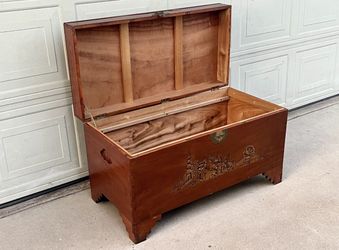 SoldNeat Asian Inspired Wood Carved Cedar Chest$165Hesperia, CA