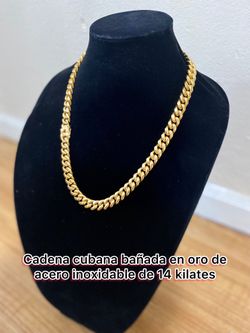 Cadena Cubana Bañada En Oro De 14 Kilates De Acero Inoxidable$100Chicago, IL